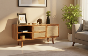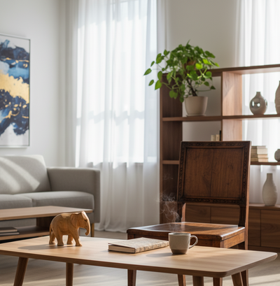 Mango Wood : Mango wood is another exceptionally popular Indian hardwood, valued for its strength and density. It is frequently utilized for large, heavy furniture items such as cabinets and wardrobes. Mango wood typically has a lighter tone and distinctive, pleasing grain patterns. Mango furniture is often treated with a subtle stain to enhance and reveal its organic beauty. Atom Story features highly unique furniture designs in our collection, all meticulously crafted from mango wood.
